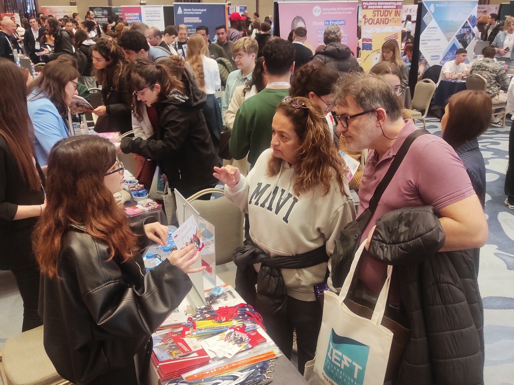 The university was represented by Wojciech Bogucki, supported by Eylül Kamiloğlu, a student of the Faculty of Mechatronics and Mechanical Engineering from Turkey. Conversations in Turkish helped present the university’s academic offer and study opportunities directly to prospective students.